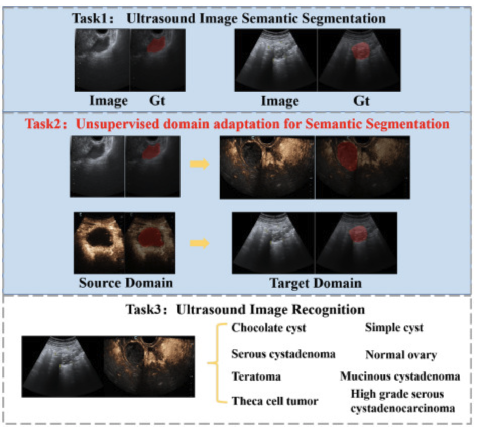 Unsupervised cross-domain semantic segmentation on multi-modality ovarian tumor ultrasound data