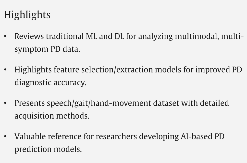 Artificial intelligence-enabled detection and assessment of Parkinson’s disease using multimodal data: A survey